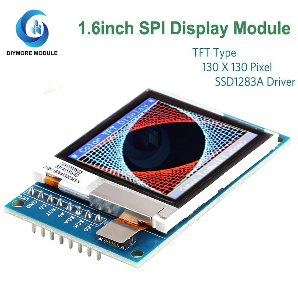 1,6 дюймовый TFT OLED ЖК-дисплей модуль 130*130 65K цветной экран последовательный интерфейс SPI SSD1283A драйвер для Arduino Характеристика:1,6-дюймовый цветной экран, поддержка 65 к цветной сенсорный экран дисплея, дисплей насыщенного цветаПолупрозрачный ЖК-дисплей, высокая производительность, хорошо виден под сильным светильникПоследовательный автобус SPI, только несколько IO может светильник на дисплееВстроенный чип преобразования мощности 3. 3 В/5 В, совместим с уровнями напряжения 3. 3 в и 5 ВДиапазон рабочих температур промышленного класса (-20-70 ° C)Стандарты военного процесса, долгосрочная стабильная работаОбеспечить техническую поддержку базового драйвераПоддержка управления подсветкой Специфика:Драйвер: SSD1283AРазрешение: 130*130Рабочее напряжение: 3,3 V/5VУгол обзора: >60 °Размер дисплея: 28,86*28,86 ммРазмер модуля: 35,4*53,82*1,6 ммМодуль интерфейса: 4-провод SPIПотребляемая мощность: около 100 мА при полном освещении, около 10 мА при полном выключении Посылка:1x1,6 дюймов TFT OLED ЖК-дисплей Дисплей модуль