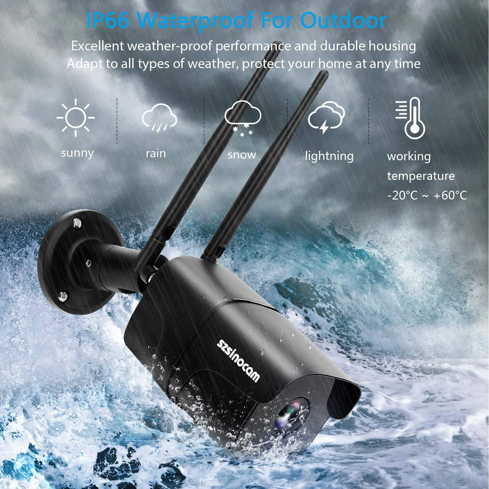 Открытый IP66 водонепроницаемый: IP66 Водонепроницаемая WIFI камера безопасности выдерживает температурный диапазон от-4 °F до 140 °F, что означает, что эта камера безопасности движения достаточно сильна, чтобы работать в грубую погоду, как сильный дождь и Снежная погода