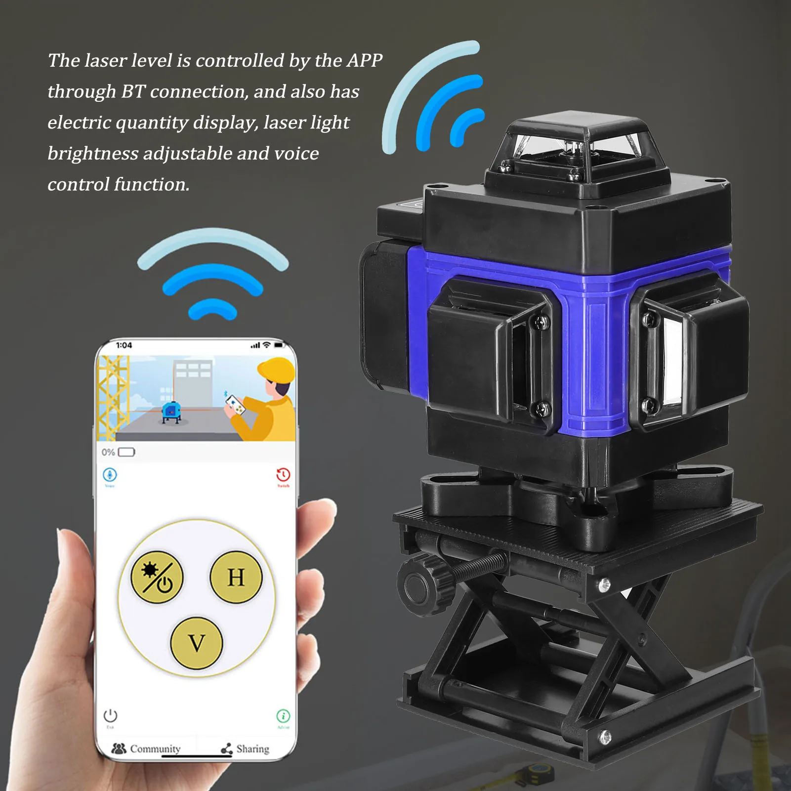 Лазерный уровень управляется приложением через BT-соединение, а также имеет отображение электрического количества, регулировку яркости лазерного светильник и функцию голосового управления.