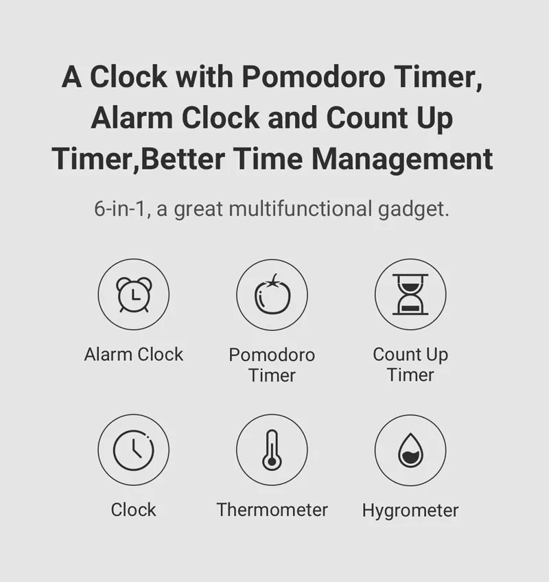 Новые Qingping Bluetooth 5,0 цифровые часы-будильник Pomotoro таймер Термогигрометр многофункциональные часы работает с приложением Mijia