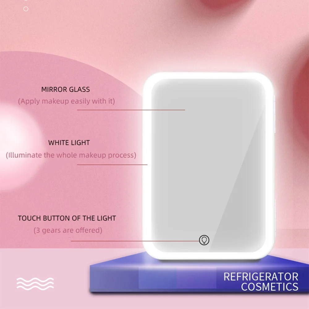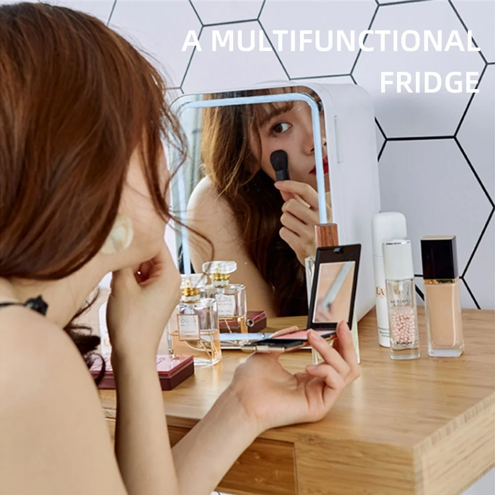 6. Выступает как зеркало и светильник. Встроенная зеркальная стеклянная дверь и кольцевой светильник по краям, вы можете просто вынуть косметику из холодильника и нанести макияж перед ним. Таким образом, ваша повседневная жизнь становится гораздо более удобной.