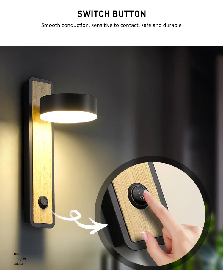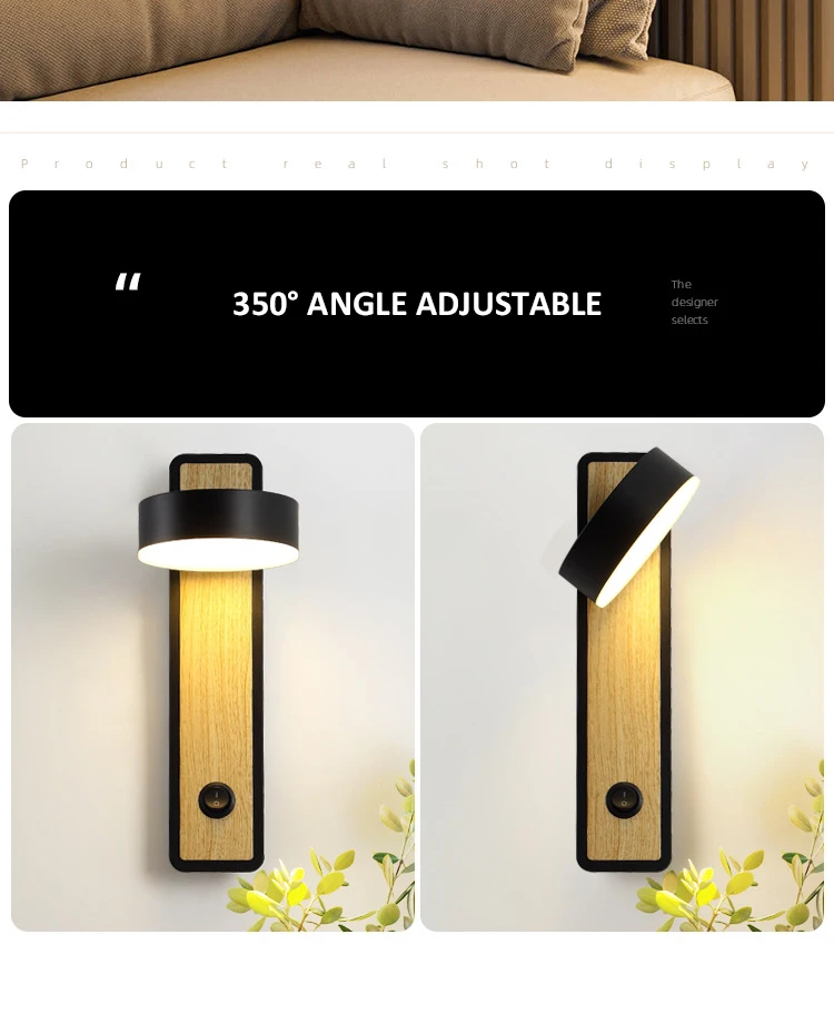 Деревянные креативные настенные светильники, вращающиеся Настенные светильники с переключателем, прикроватные светильники для спальни, коридоры, проходы, внутреннее освещение, современные светильники