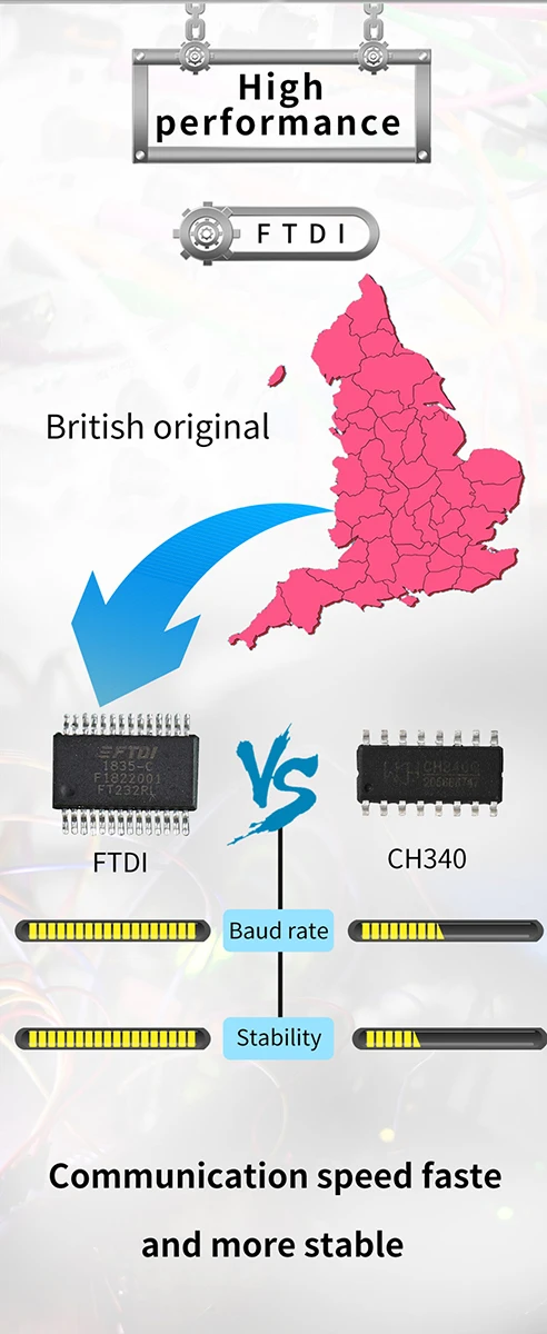✔Чип FTDI имеет гораздо более высокую скорость распространения и более стабильный и надежный