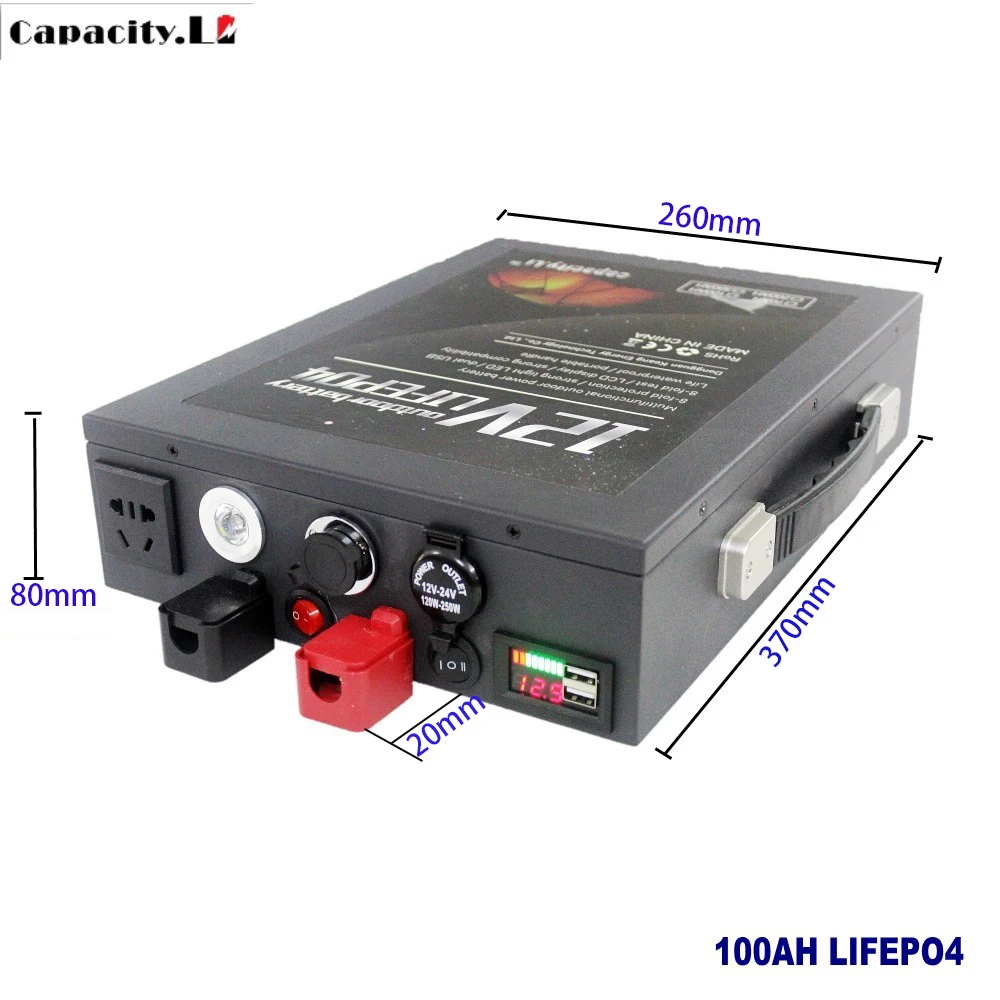 12V 100 ахах LIFEPO4 с солнечным инвертором 220V350W выход/5V2A Быстрая зарядка/прикуривателя/Авиация зарядки/светодиодный свет/красного и черного цветов выходной терминал