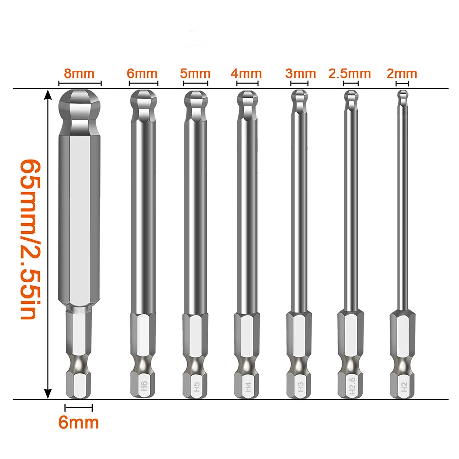 Особенности1. 【Шаровая отвертка с шестигранной головкой: 1,5 мм, 2 мм, 2,5 мм, 3 мм, 4 мм, 5 мм, 6 мм, 8 мм и 10 мм; Модель: h10/H8 / H6 / H5 / H4 / H3 / H2.5 / H2/ H1.5; Каждая отвертка маркируется размером в потребительском стиле.