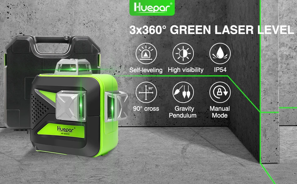 Pulse mode extends the working range up to 200Ft in brighter working conditions when using with Huepar Line Laser Receiver.