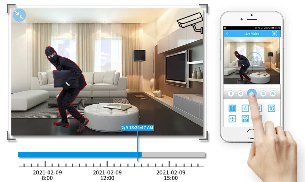 Простая настройка, всего 4 шага для просмотра мобильный телефон, просмотра видео в режиме реального времени из любого места и в любое время с помощью смартфона, стола или ПК с передовой технологией P2P, вы можете получить удаленный доступ к вашей системе за считанные минуты или меньше, нет необходимости в переадресации, удаленный доступ никогда не был таким простым