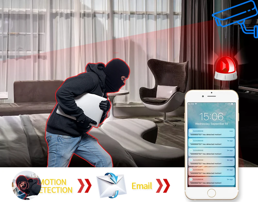 Когда вы находитесь на улице или дома, он отправит оповещения на ваш телефон, как только обнаружит какое-либо движение в области мониторинга, чтобы сохранить ваш дом в безопасности. Независимо от того, где вы находитесь, эта камера безопасности будет надежным защитником для вашего дома и позволит вам быть уверенным.