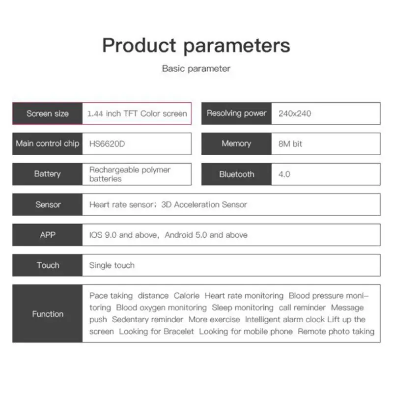 Функции: Настройка будильника, напоминание о сидячем положении, монитор сердечного ритма, шагомер, монитор сна, напоминание о звонках/сообщениях, Поиск телефона, поднятие руки на светильник, удаленная камера и многое другое.