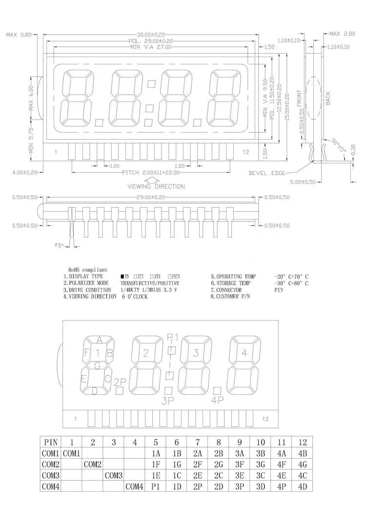 4-знака после запятой сегмент ЖК-дисплей Панель