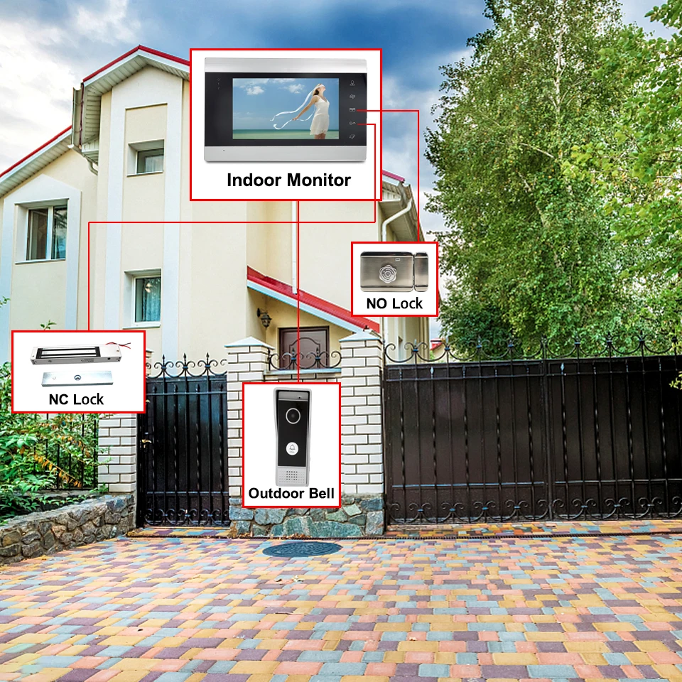 Это видеодомофон с функцией Wi-Fi, которая поддерживает работу с мобильными телефонами, когда пользователь нажимает дверной звонок, ваш телефон получит уведомление о приложении, это означает, что вы можете использовать приложение, чтобы открыть дверь, поговорите с визитером, посмотрите видео и так далее, когда пользователь нажмет дверной звонок, ваш телефон получит уведомление о приложении.
