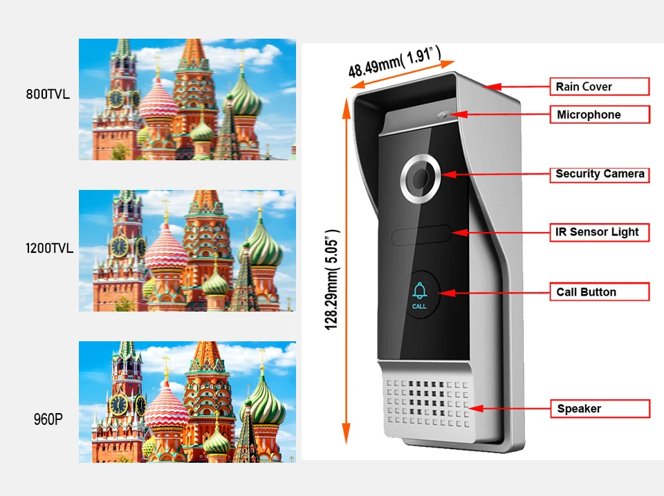 ♦Совместим с большинством моделей CVBS или AHD дверной звонок, Макс 960P/1.3MP дверной звонок и вход камеры.