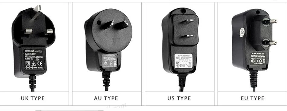 Есть 4 типа адаптеров питания, мы отправим применимый адаптер питания в соответствии с вашей страной, если у вас есть специальный заказ, пожалуйста, свяжитесь с нами бесплатно.