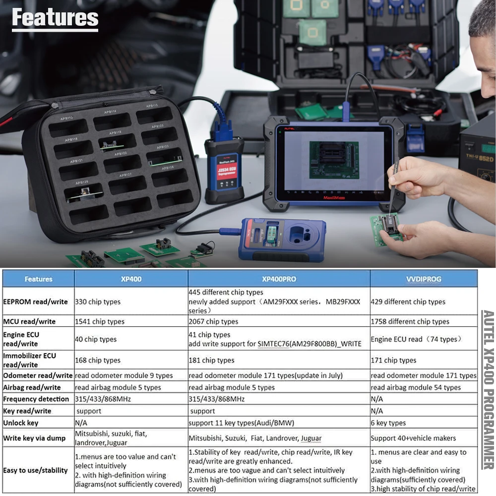 IMKPA-это набор адаптеров для программирования, совместимый с ключом XP400Pro и чипом-программатором. Включает 12 адаптеров для XP400Pro, которые позволяют считывать/записывать/стирать данные для Mercedes Benz ESL_W209 / W906, Mercedes Benz NEC Key Learning, BMW EWS3 Key Learning и. Ключ разблокировки Volkswagen/AUDI/BMW/Benz. Совместим с IM608 и IM508 с XP400Pro.
