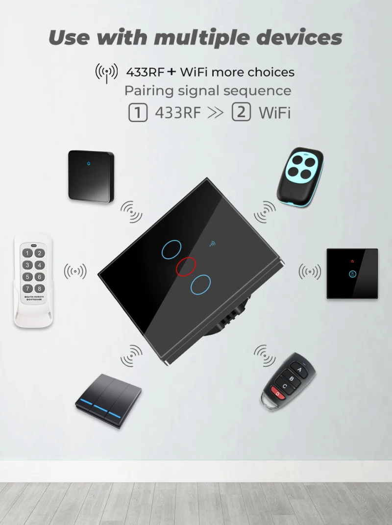 【Четыре метода управления 】 управление приложением + Голосовое управление + 433 МГц RF беспроводной переключатель + переключатель сенсорного управления