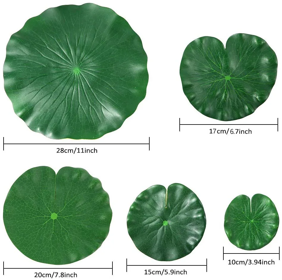 Цвет этих листьев пруда будет оставаться ярким на воде. Они выглядят как настоящие листья лотоса, создавая великолепный вид