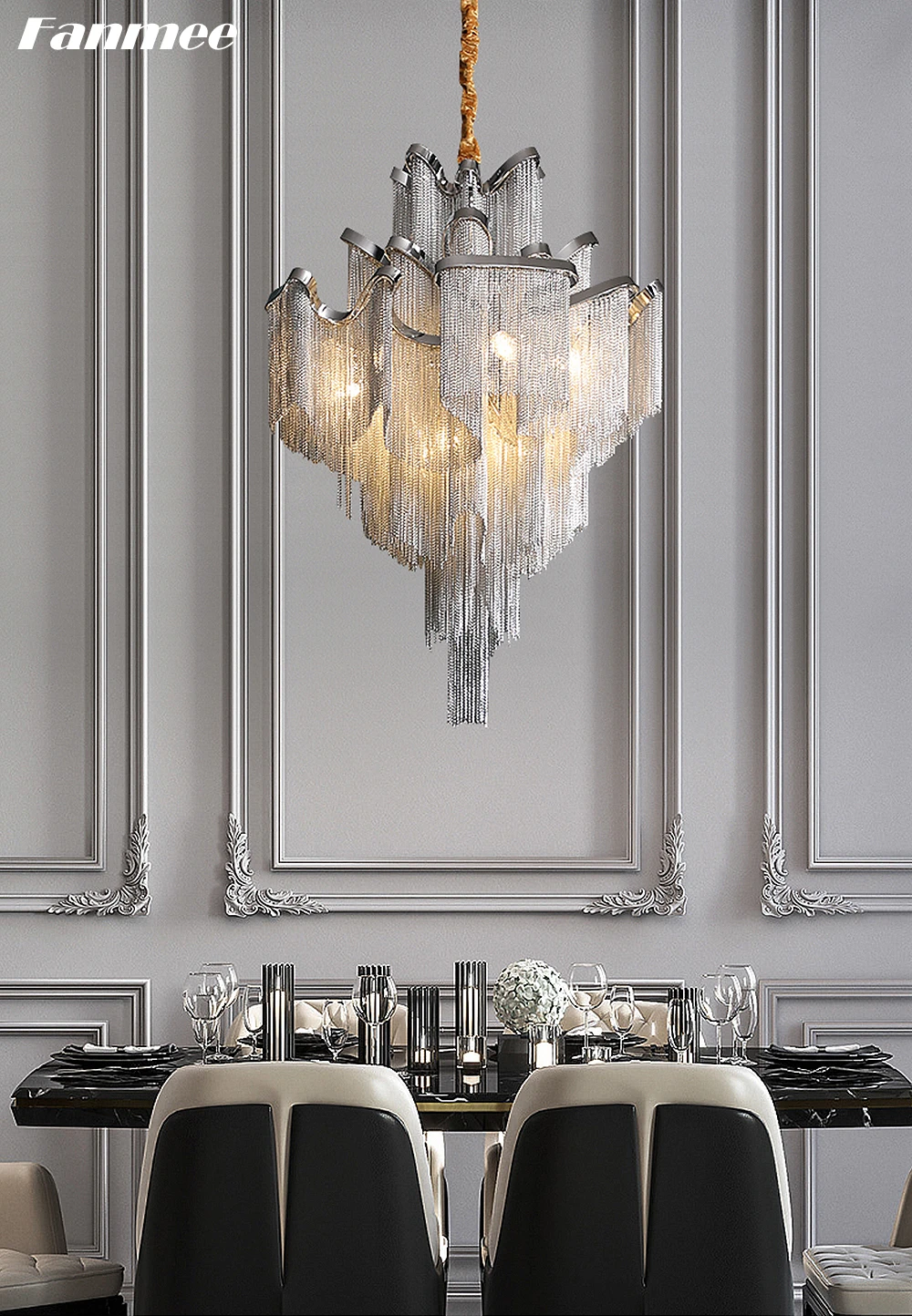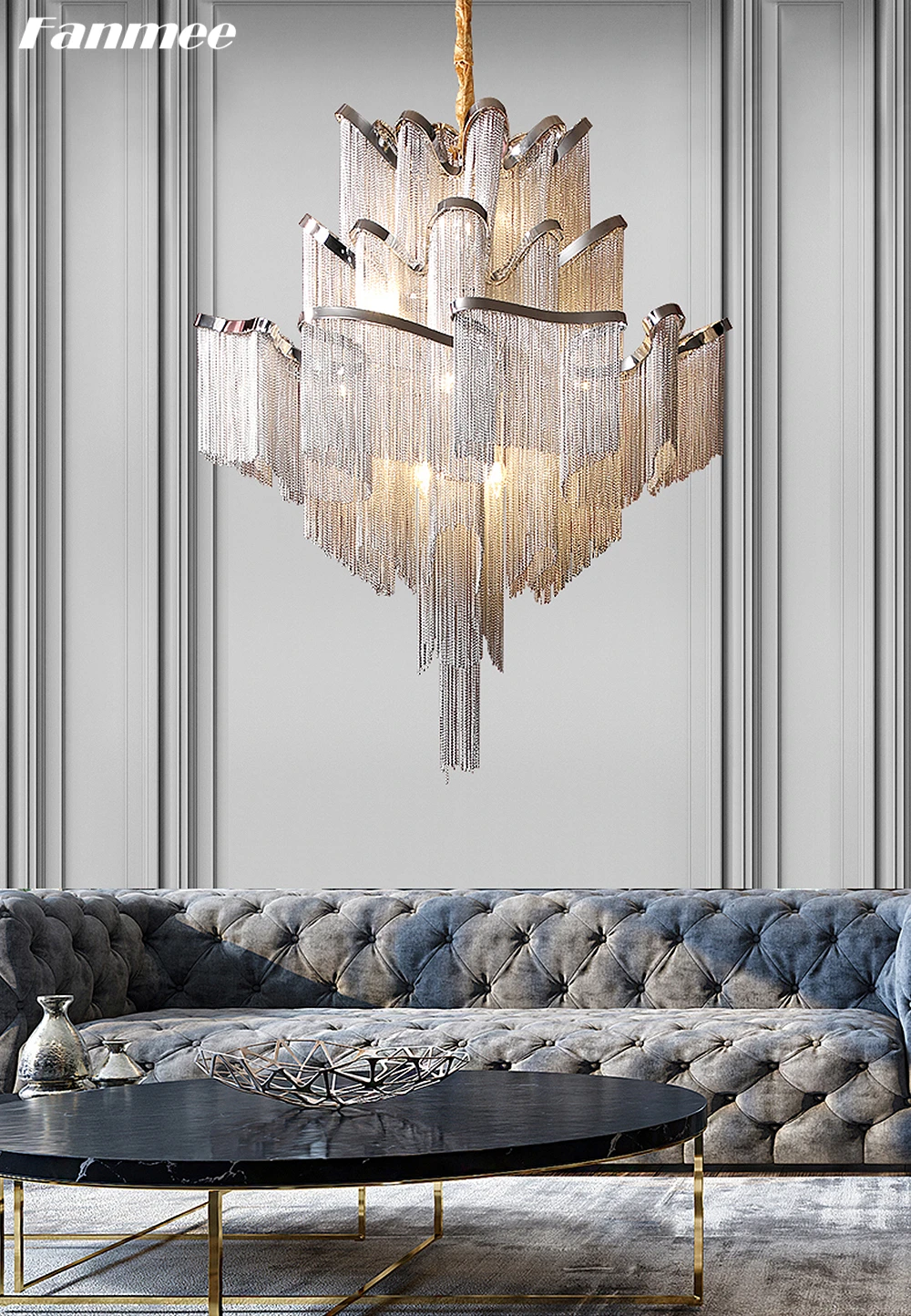 Роскошная Irrecgular хромированная люстра, светильник светодиодный, Современная Серебряная цепочка, подвесная люстра с кисточкой, блестящий светильник, приспособление для гостиной