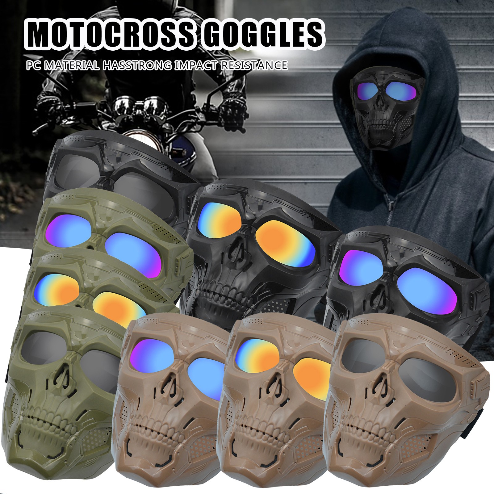 Ветрозащитные очки для езды на мотоцикле, маска для шлема с черепом