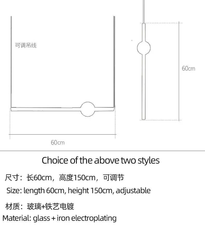 Светильник источник света: светодиодный (Примечание: в том числе лампы!) светильник ing: белый светильник и теплый светильник. Материал: стекло + Гальваника. Размер: 60 см в длину, лампа + провод 150 см в длину, регулируется, требует более длительного контакта со службой поддержки клиентов. Применение: гостиная, столовая, гостиница, столовая, бар, зал, офис и т. Д.
