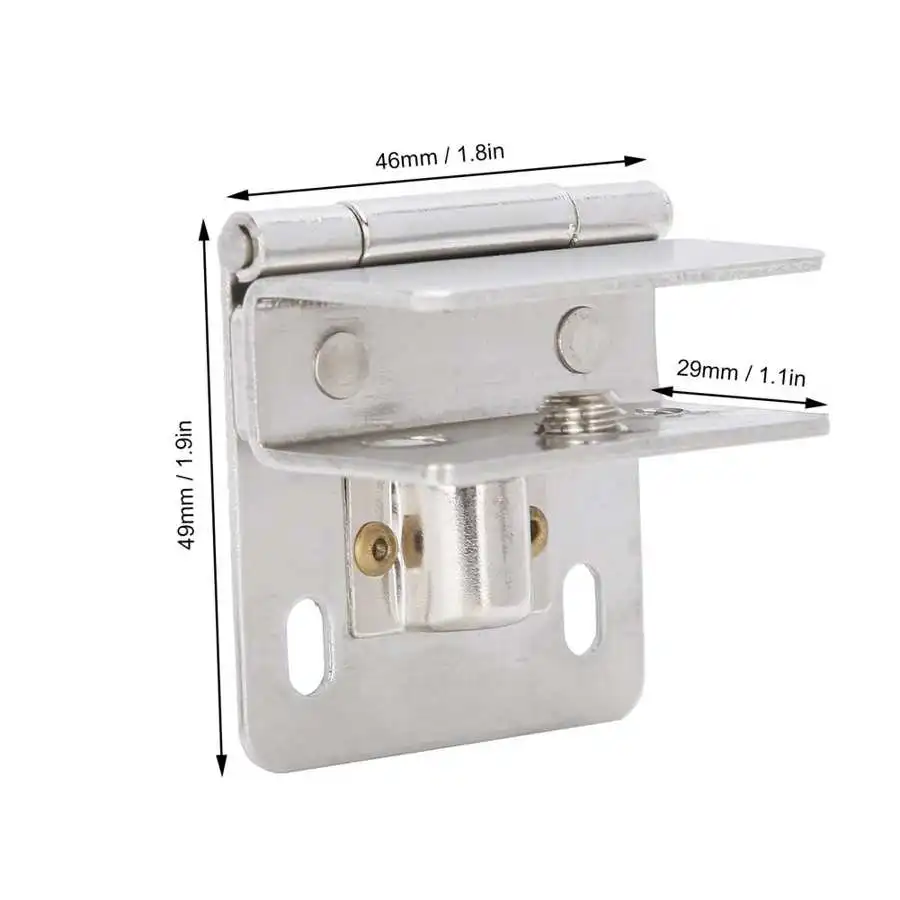 Feature: Specification: Item Type: Glass Door Hinge Size: Approx. 46 x 49 x 29mm / 1.8 x 1.9 x 1.1in Scope Of Application: Glass cabinet doors, cabinet doors, display cabinets, wine cabinets, etc.