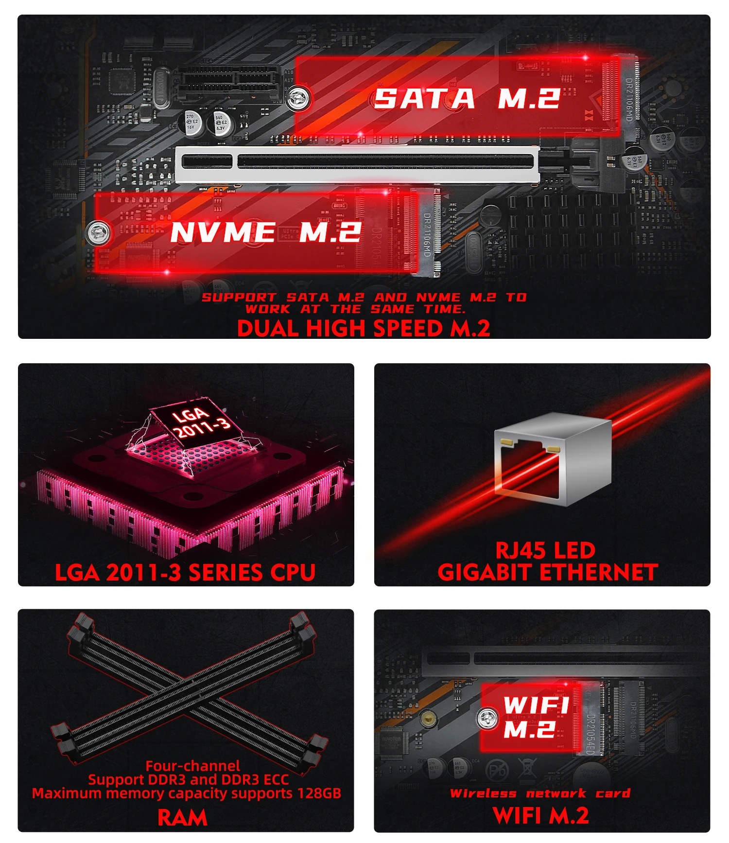 Поддержка двойного ЦП: серия Intel с разъемом LGA 2011-3 (Поддержка Intel Core i7 или xeon e5 серии v3 и v4) E.g:E5 2629 V3 E5 2649 V3 E5 2669 V3 E5 2673 V3 E5 2676 V3 E5 2678 V3 E5 2696 V3