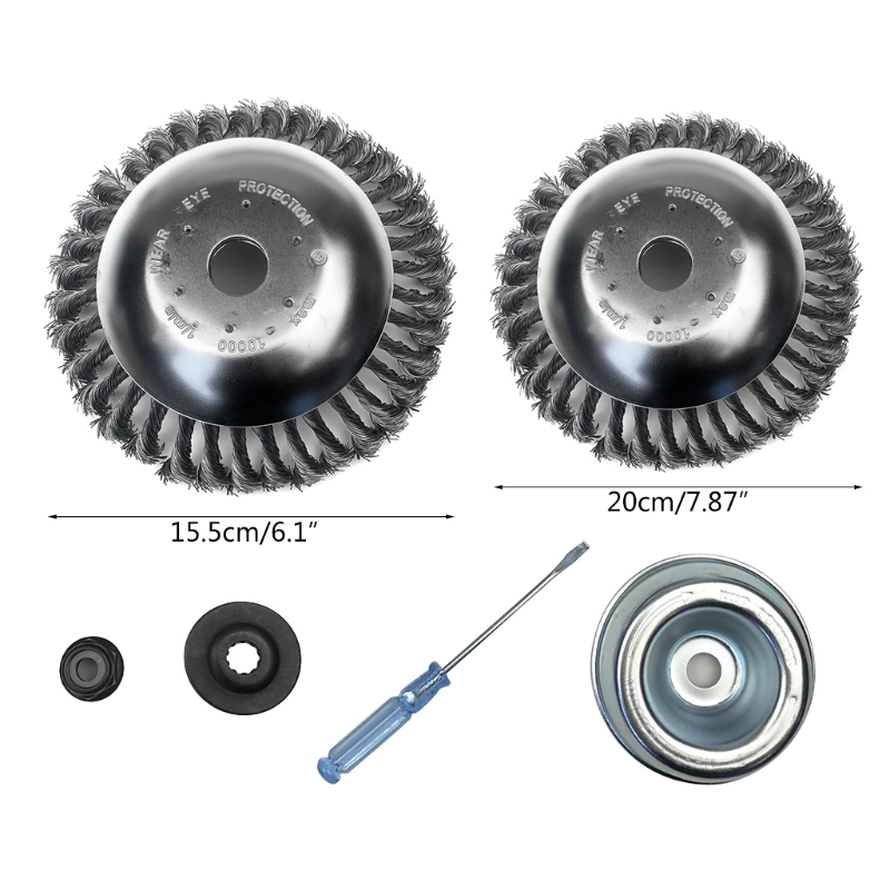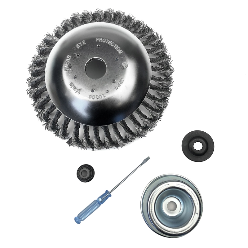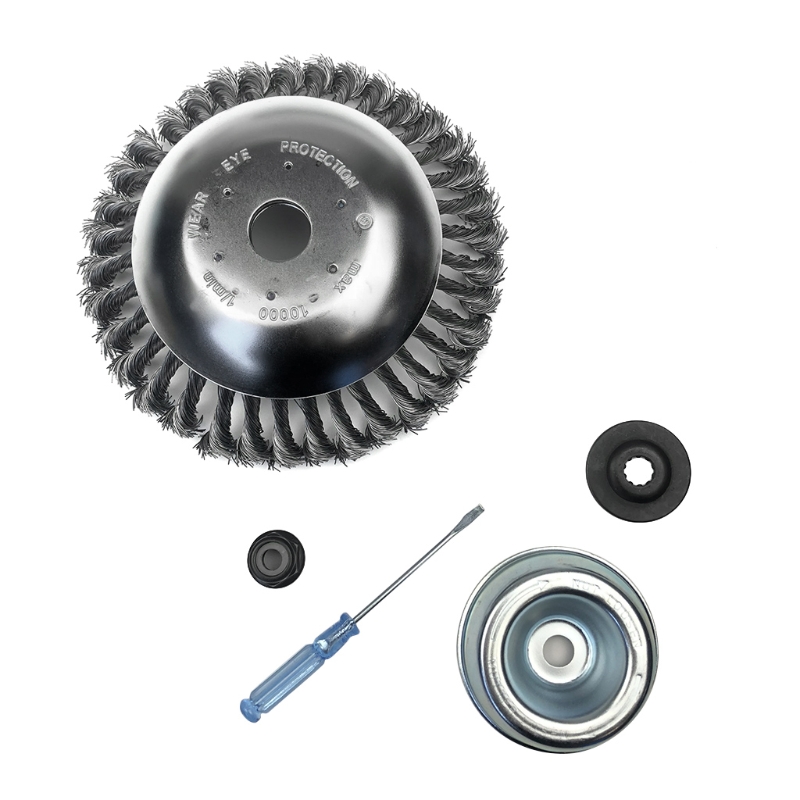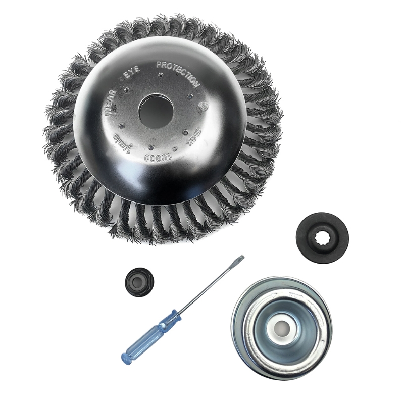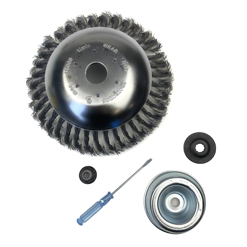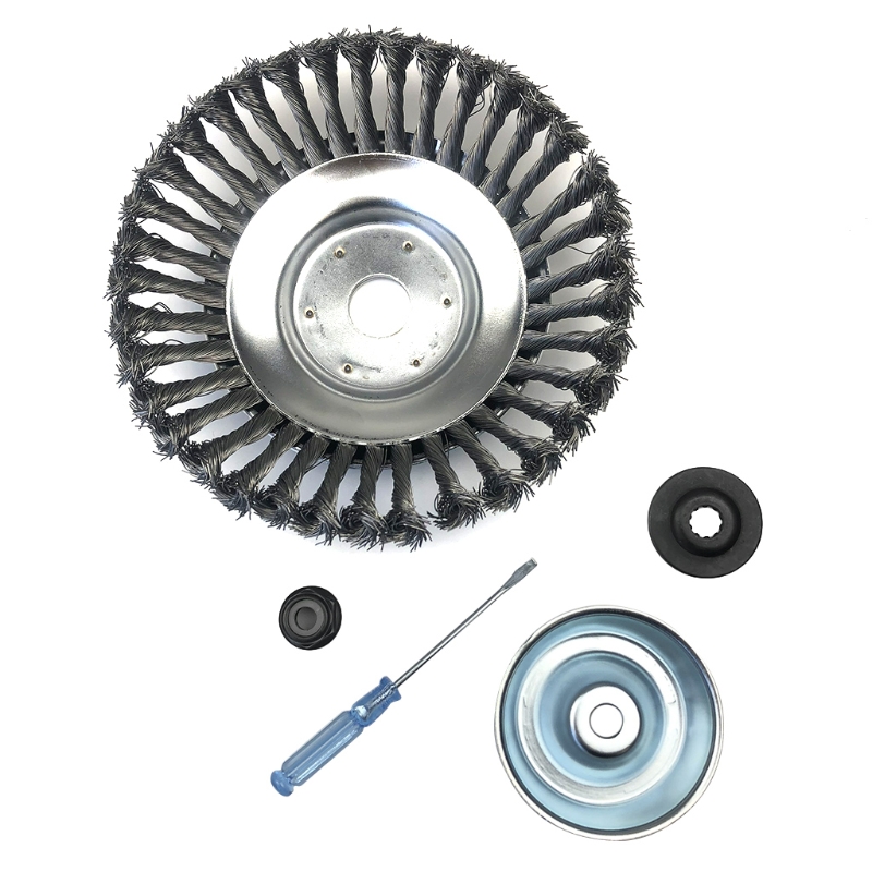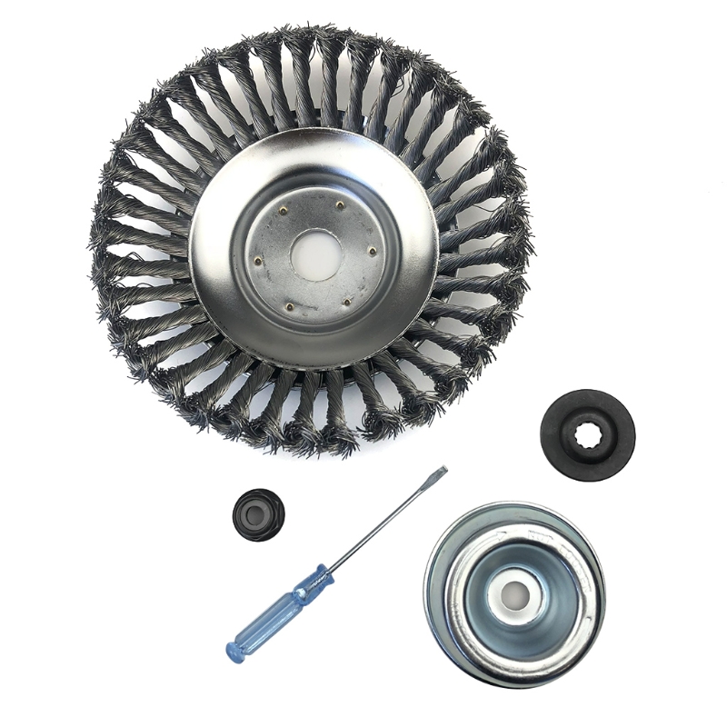 Скрученная стальная Щетка для колес изготовлена из двухслойного толстого диска из нержавеющей стали и износостойкой пружинной стальной проволоки, которая является прочной и долговечной, а стальная проволока не легко отвалится. При попадании камней и комков, он может работать, и продолжительность жизни в десять раз выше, чем у других триммеров.
