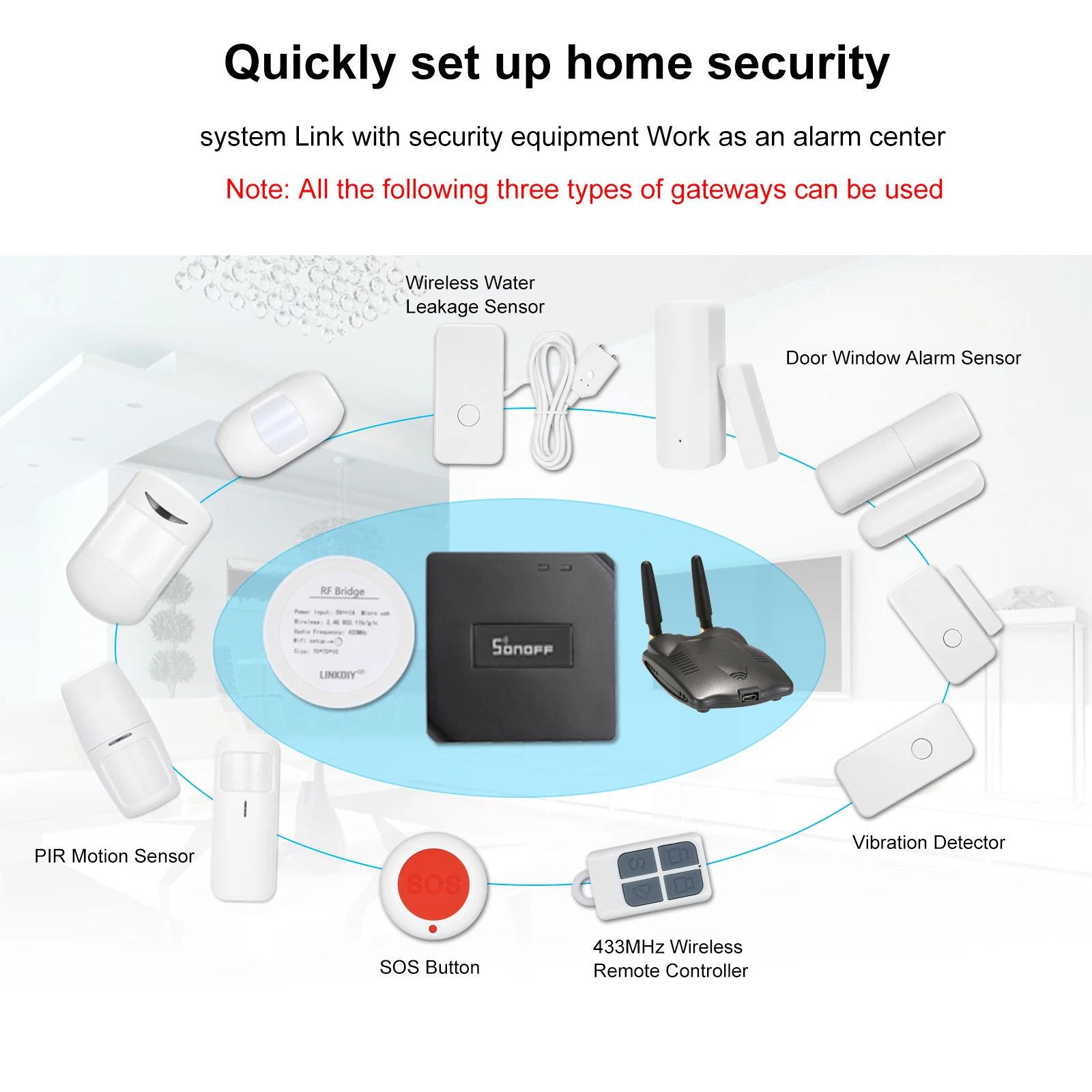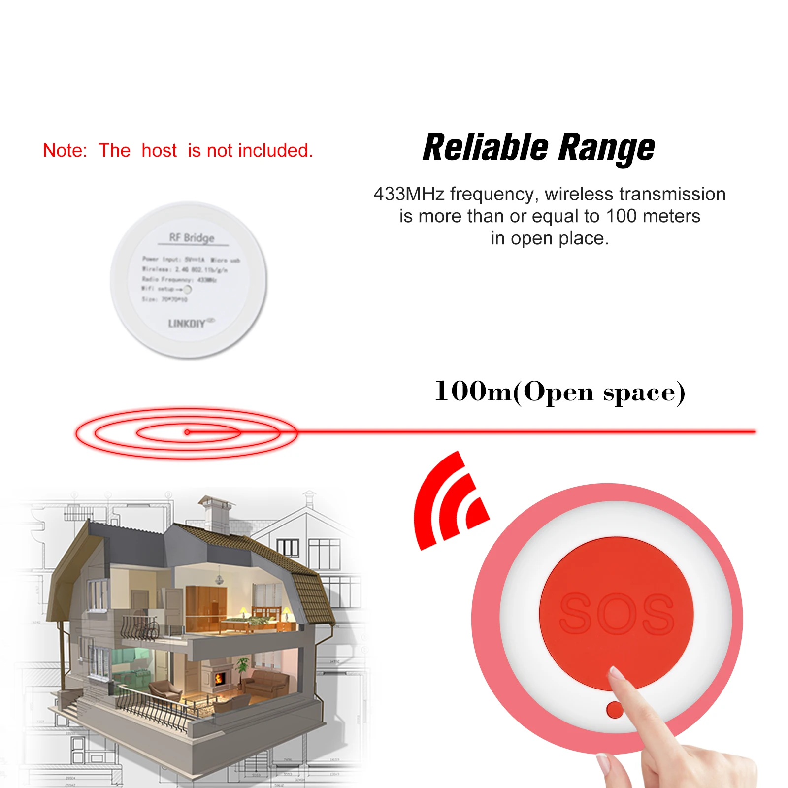 Примечание: кнопка SOS аварийной ситуации должна работать с хостом системы сигнализации или Sonoff RF Bridge 433.