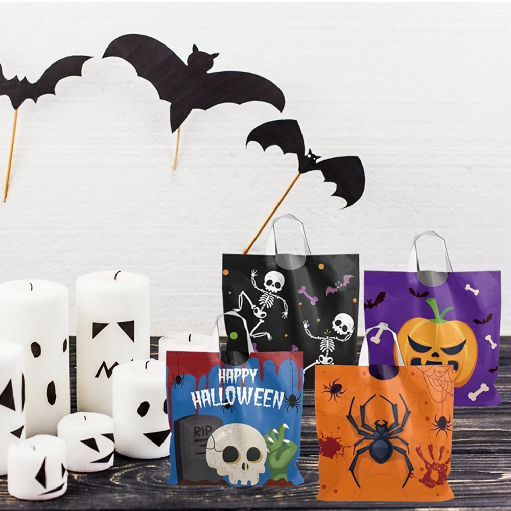 Мешки для конфет на Хэллоуин изготовлены из шелкового пластика, легкие, прочные для детей, не легко рвать