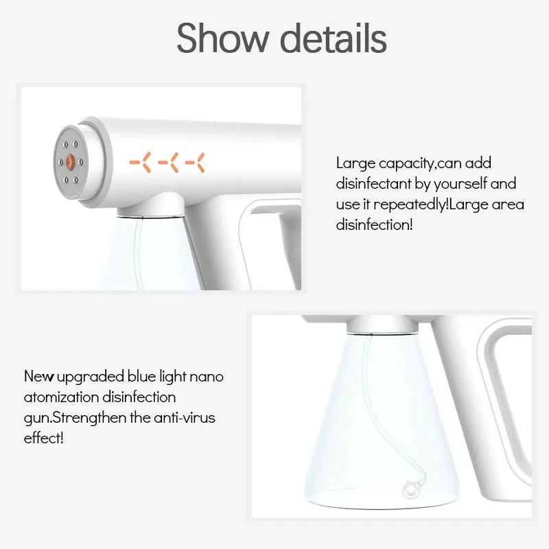 Беспроводной и портативный: Этот атомайзер легче и тише, чем другие крупные опрыскиватели. Головка медной пушки имеет высокую способность к скоплению давления, большую емкость для хранения, съемное сопло и встроенный фильтр для предотвращения засорения. Оснащен встроенной батареей, удобной для дезинфекции и эффективной вспомогательной функцией стерилизации. Стандартная конструкция температурного распыления безопаснее, чем высокотемпературное распыление!