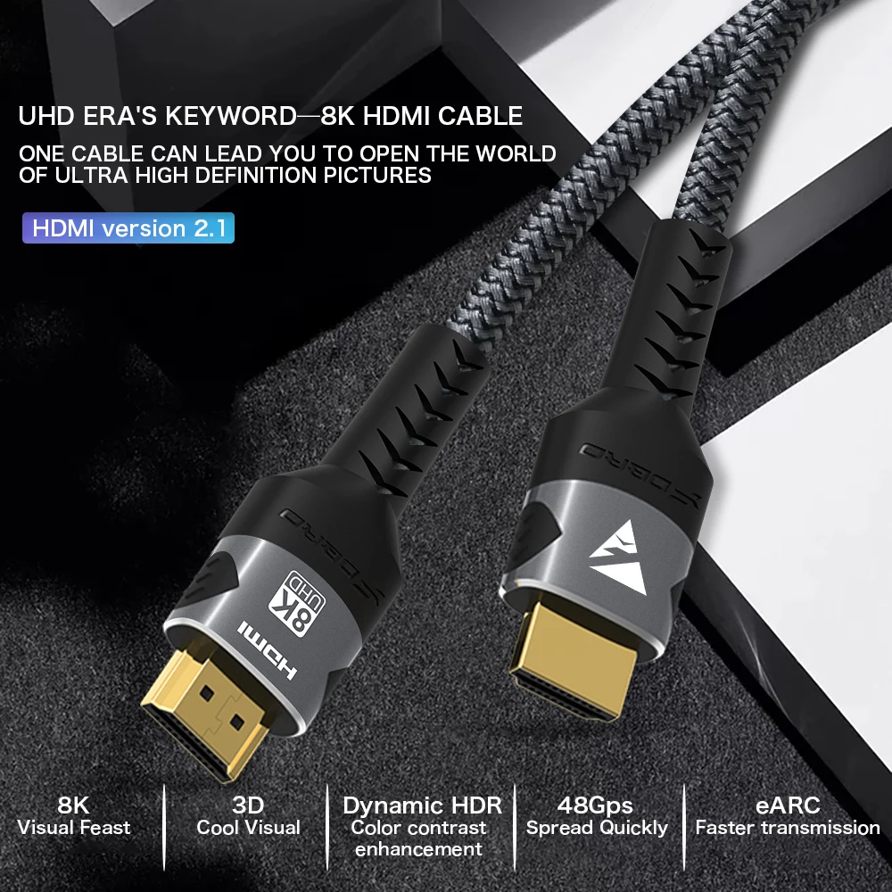 Fdbro Hdmi 2,1 кабель высокой четкости 8K @ 60Hz позолоченный оптический разъем динамический Hdr скорость передачи 48 Гбит/с хлопок сеткаВведение
