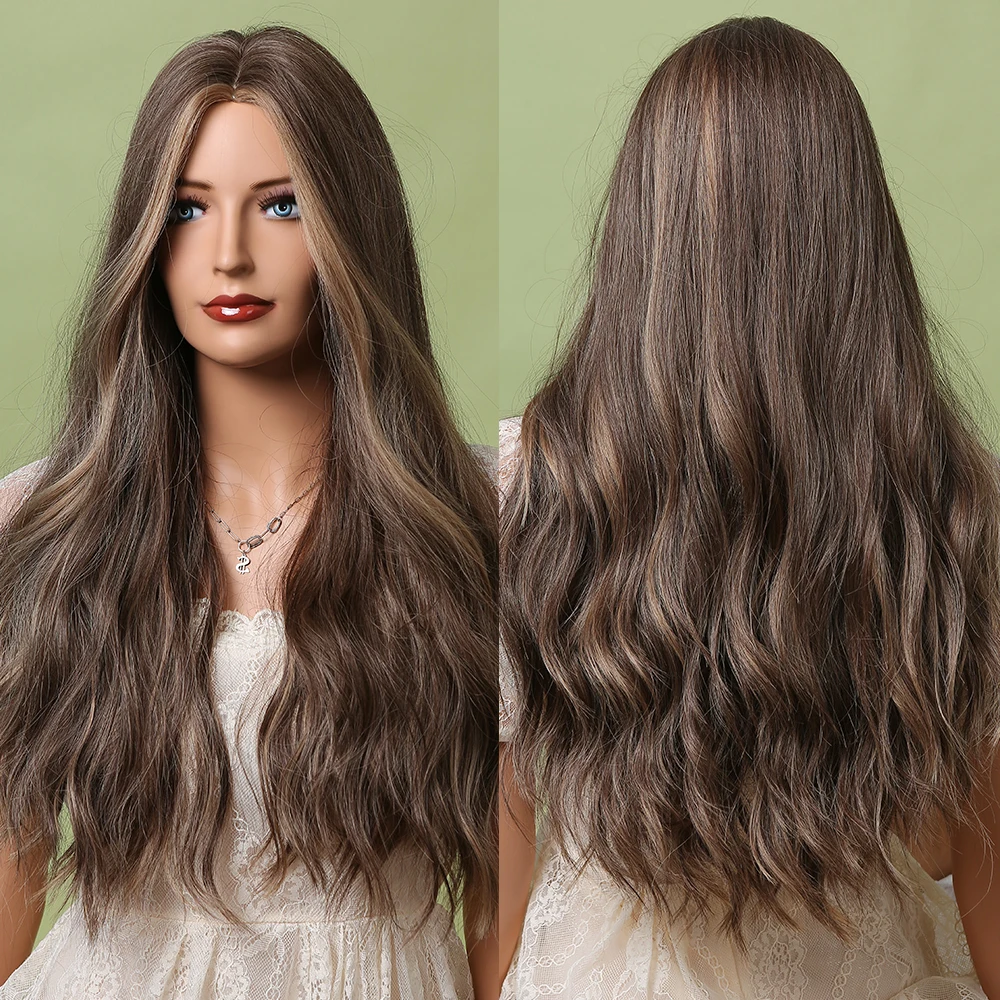 Длинные волнистые парики GEMMA темно-коричневые золотистые светлые синтетические парики для женщин термостойкие натуральные парики средней части для косплея