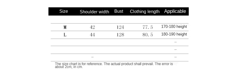 Размер: M/170-180см, ширина плеч: 42 см, обхват груди: 124 см, длина: 77,5 см