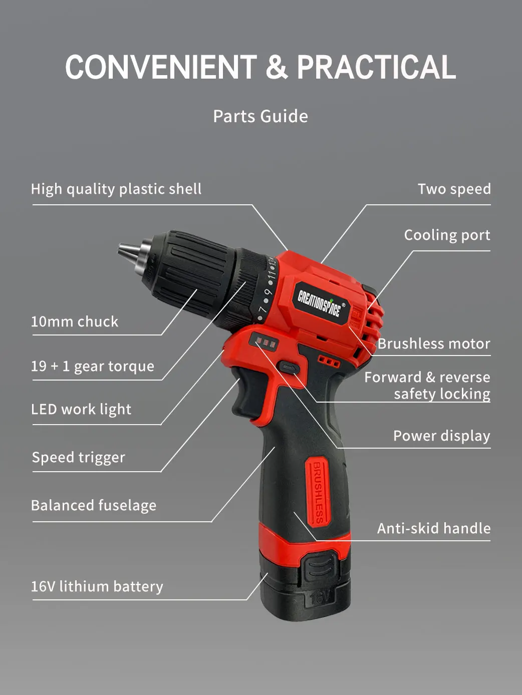 Посылка: дрель 1 шт., батарея 2 шт., зарядное устройство 1 шт.