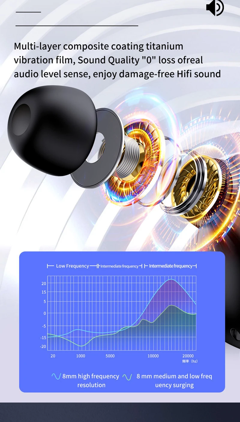 4.HIFI звуковой эффект, HD объемное стерео восстановление реального звука, интеллектуальное шумоподавление, обеспечивает максимальное качество сигнала и гарантирует отличное качество звука.
