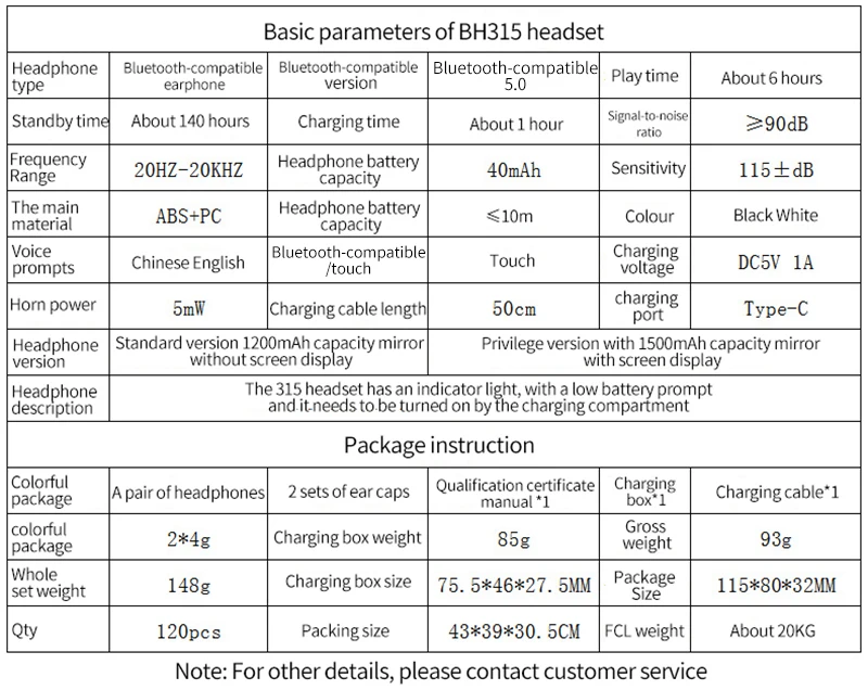 Премиум-версия: полноэкранный дисплей питания, аккумулятор 1500 мАч, HIFI Звук высокой четкости, вызов высокой четкости, интеллектуальное шумоподавление, Совместимость с Bluetooth 5,0