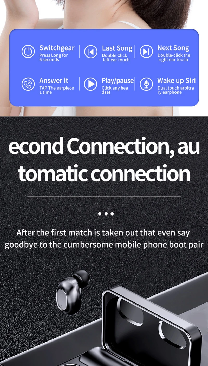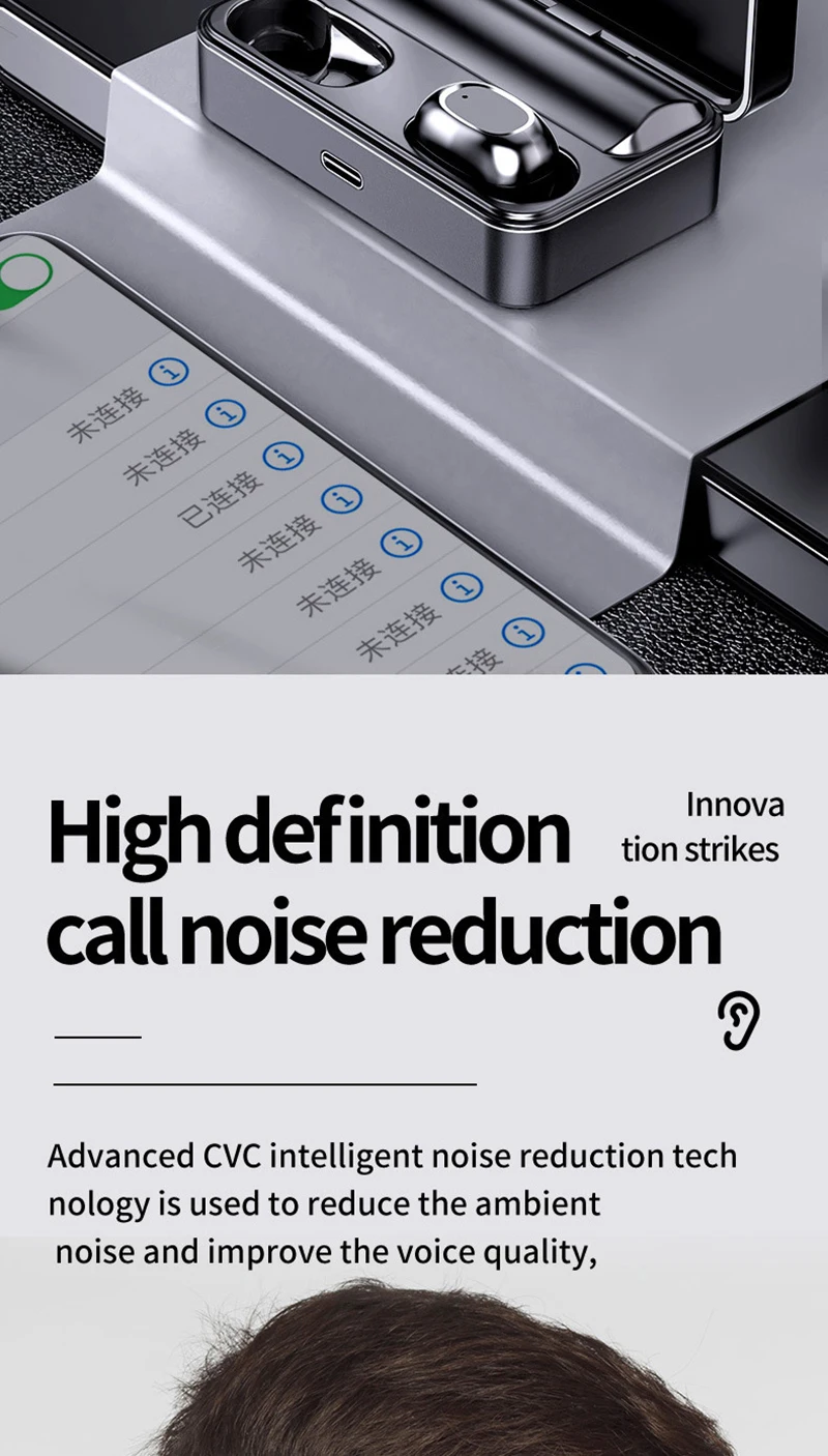 Версия плюс: полноэкранный дисплей питания, аккумулятор 1500 мАч, HIFI Звук высокой четкости, вызов высокой четкости, интеллектуальное шумоподавление, Совместимость с Bluetooth 5,0
