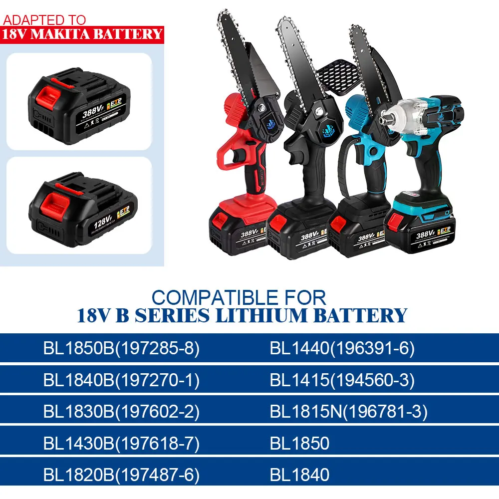 √ Совместим с литиевой батареей серии 18 в B, такими как BL1850B(197285-8),BL1840B(197270-1),BL1830B(197602-2),BL1430B(197618-7),BL1820B(197487-6);