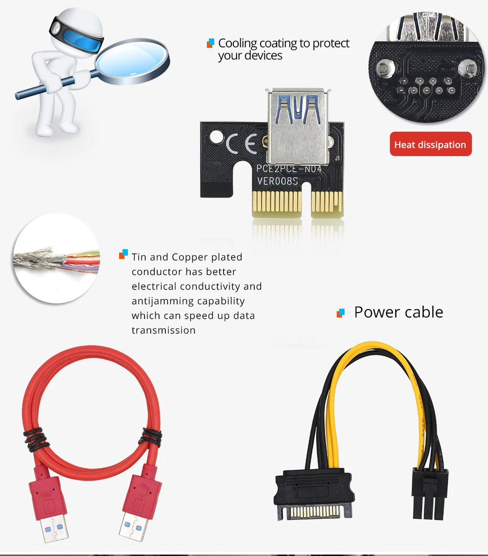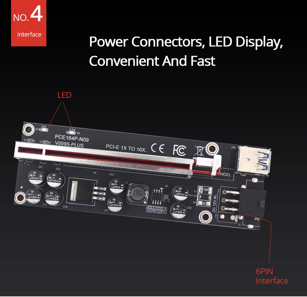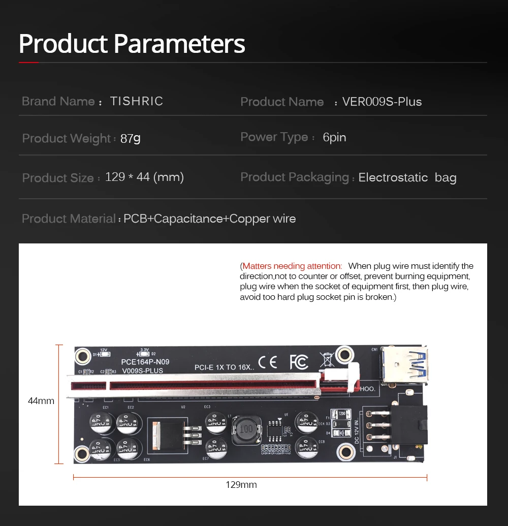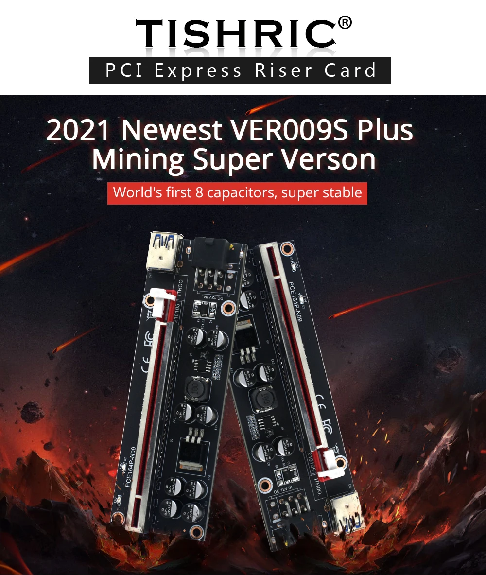1/6/10 шт. TISHRIC BTC PCIE Riser 009S плюс 6pin pci-e 16x Райзер для видеокарты VER009S плюс Графика переходная карта для добычи полезных ископаемых