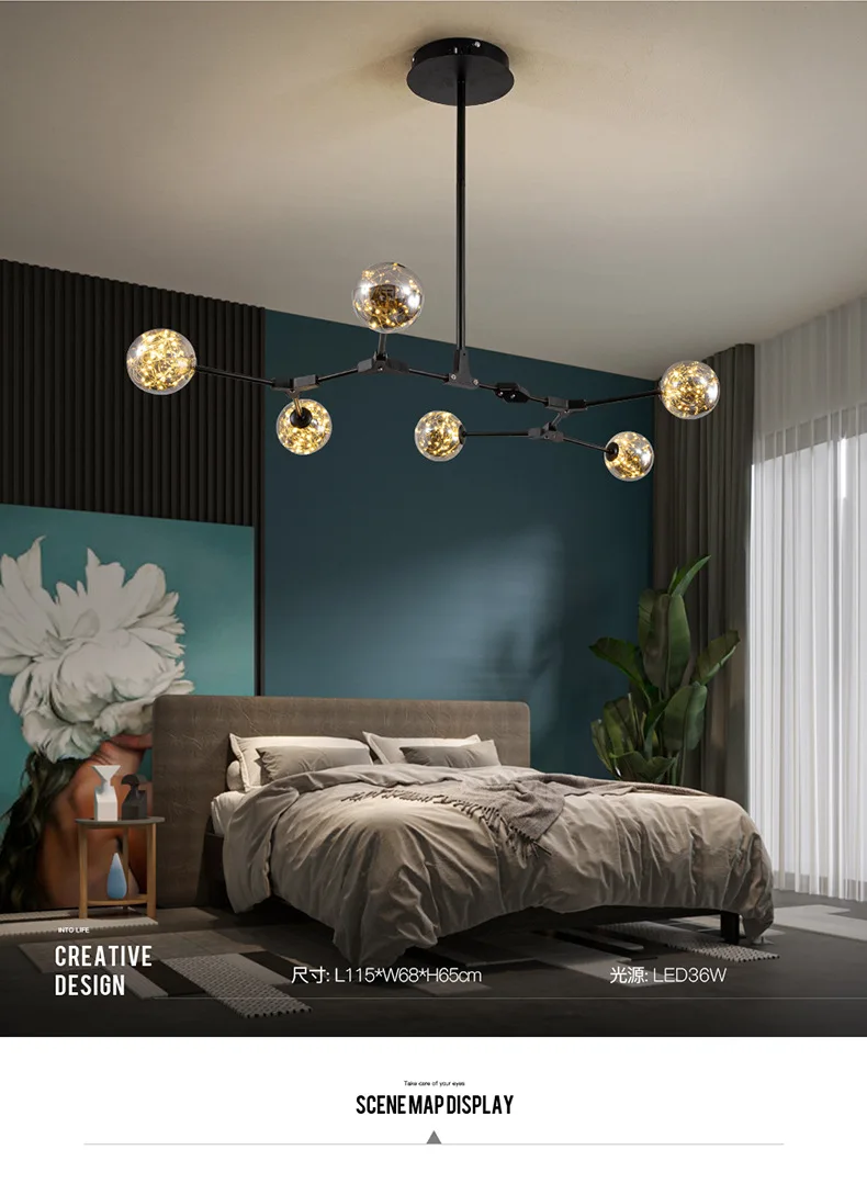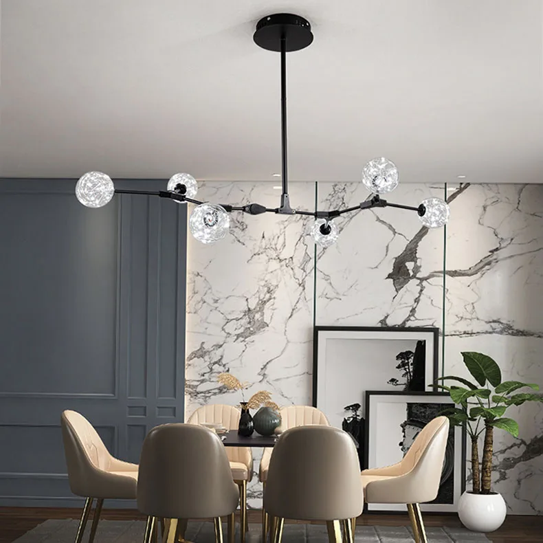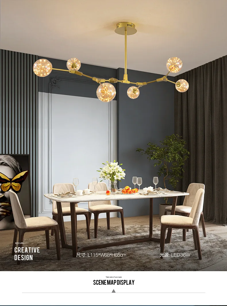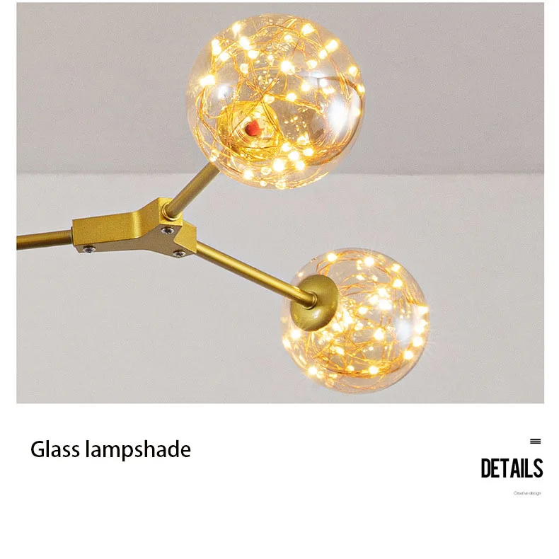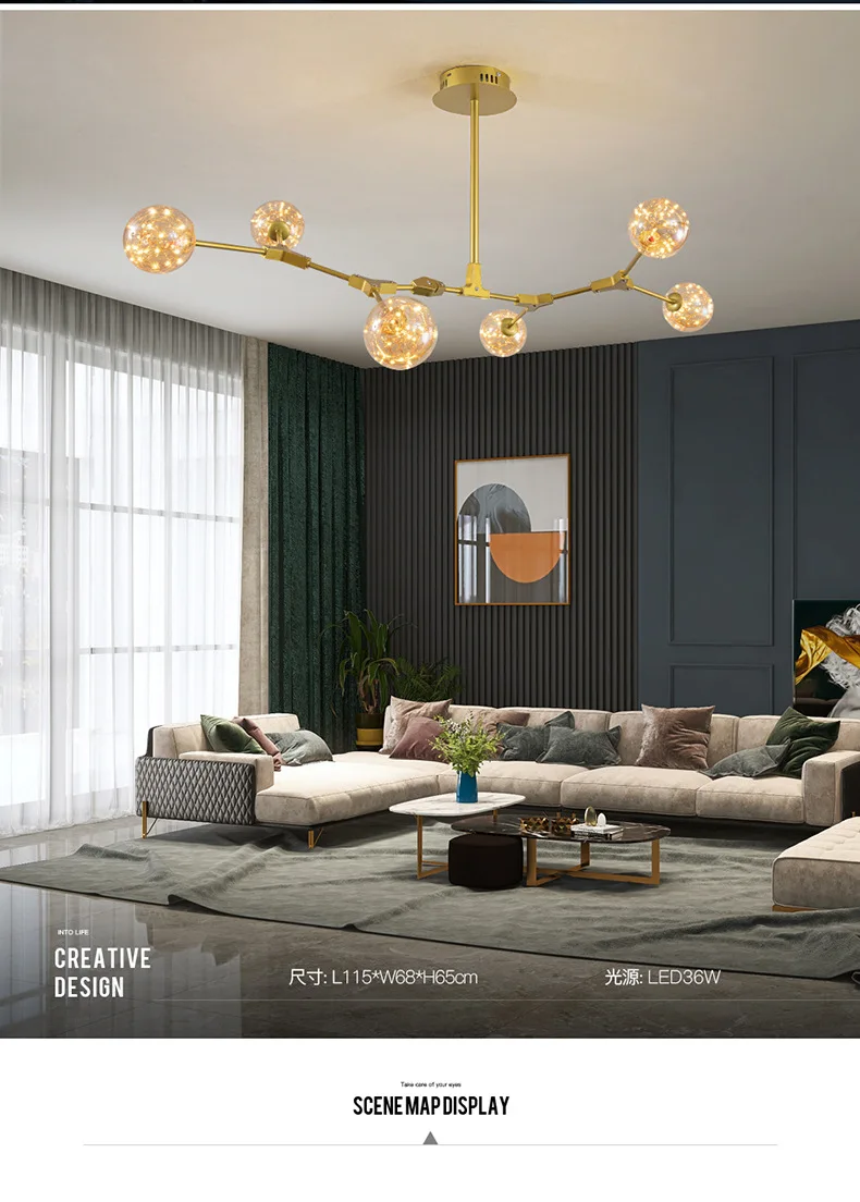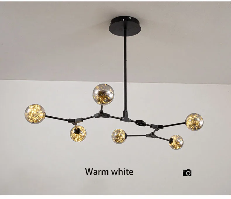 Kobuc креативная люстра, светло-серый Янтарный стеклянный шар, Потолочный подвесной светильник, Романтическая звезда, декор для гостиной, светодиодное освещение