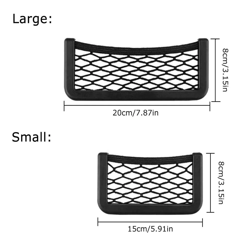 【Две модели 】 Большой размер нетто для хранения 20*8 см/7,87*3,15 дюймов (Д * Ш); Маленький размер нетто для хранения 15*8 см/5,91*3,15 дюймов (Д * Ш). Два разных размера, подходят для вашего телефона, карты, чеков, очков и других мелких вещей, сделают ваш автомобиль организованным. Легко собрать большие и мелкие предметы, чтобы сделать ваш автомобиль аккуратным и организованным, сделать вашу жизнь намного проще.