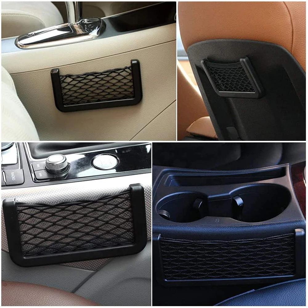 【Широко используется d】 подходит для всех автомобилей, дома, RVs, легковых автомобилей, автобусов и т. д. Автомобильная сетка для хранения, которая может прилипать в любом месте вашего автомобиля, включая заднюю часть ваших автомобильных сидений, сапог, багажника, спинки сиденья или обивки. Отлично подходит для путешествий или ежедневного использования, экономит места для вашего автомобиля и сохраняет маленькие вещи в пределах вашего досягаемости.