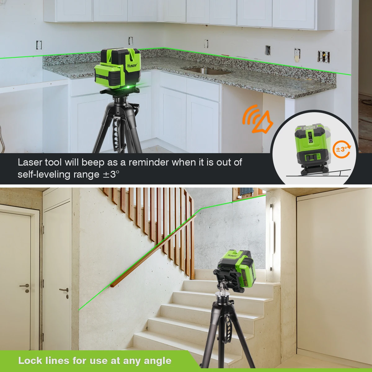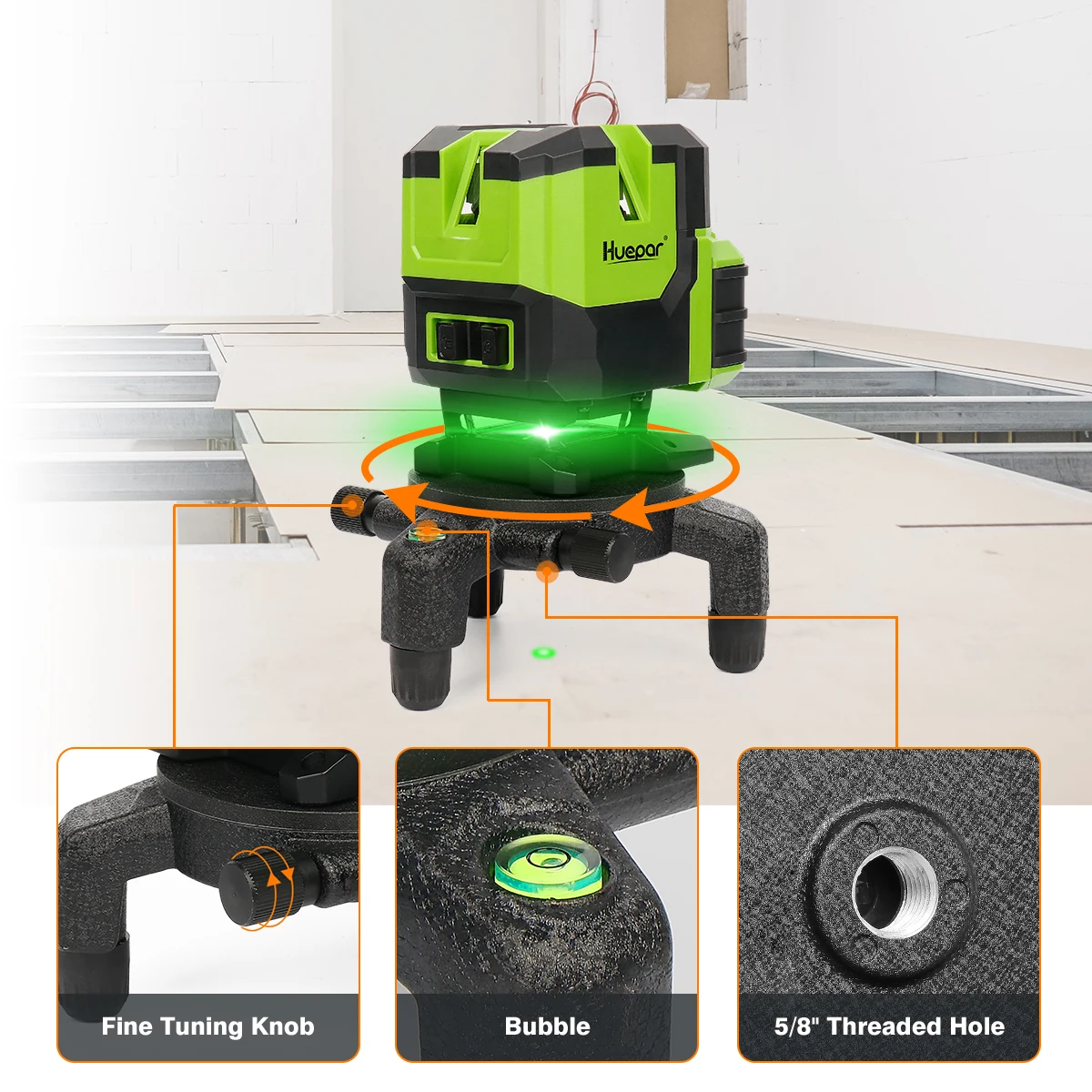 Huepar LS11G мульти-линия и выравнивание-линия лазера обеспечивает все-в-одном уровне и выравнивание решение для установки одного человека, позволяет пользователям покрывать пол, стену, потолок по всей комнате.