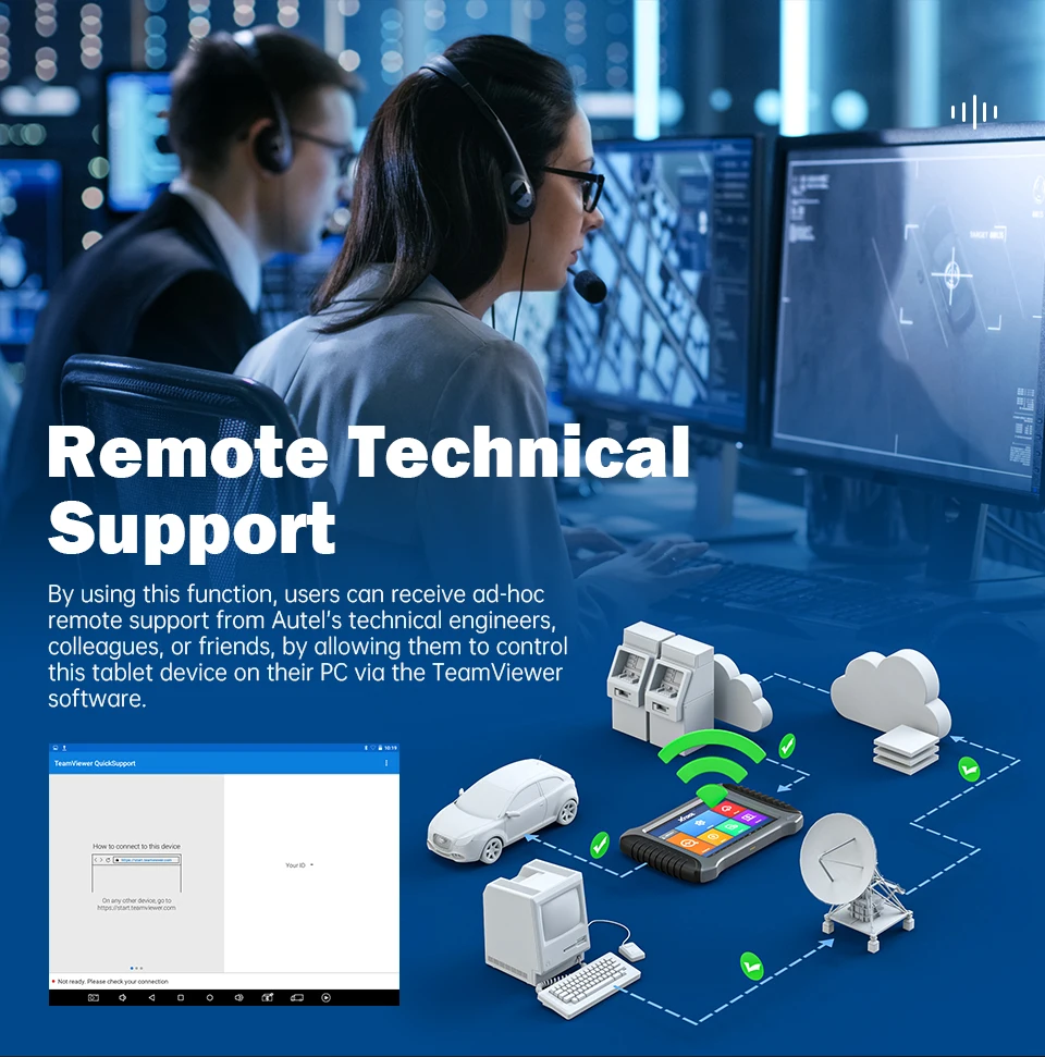 Используя эту функцию, пользователи могут получать специальную удаленную поддержку от технических инженеров, коллег или друзей Autel, позволяя им управлять этим планшетным устройством на своем ПК с помощью программного обеспечения TeamViewer.
