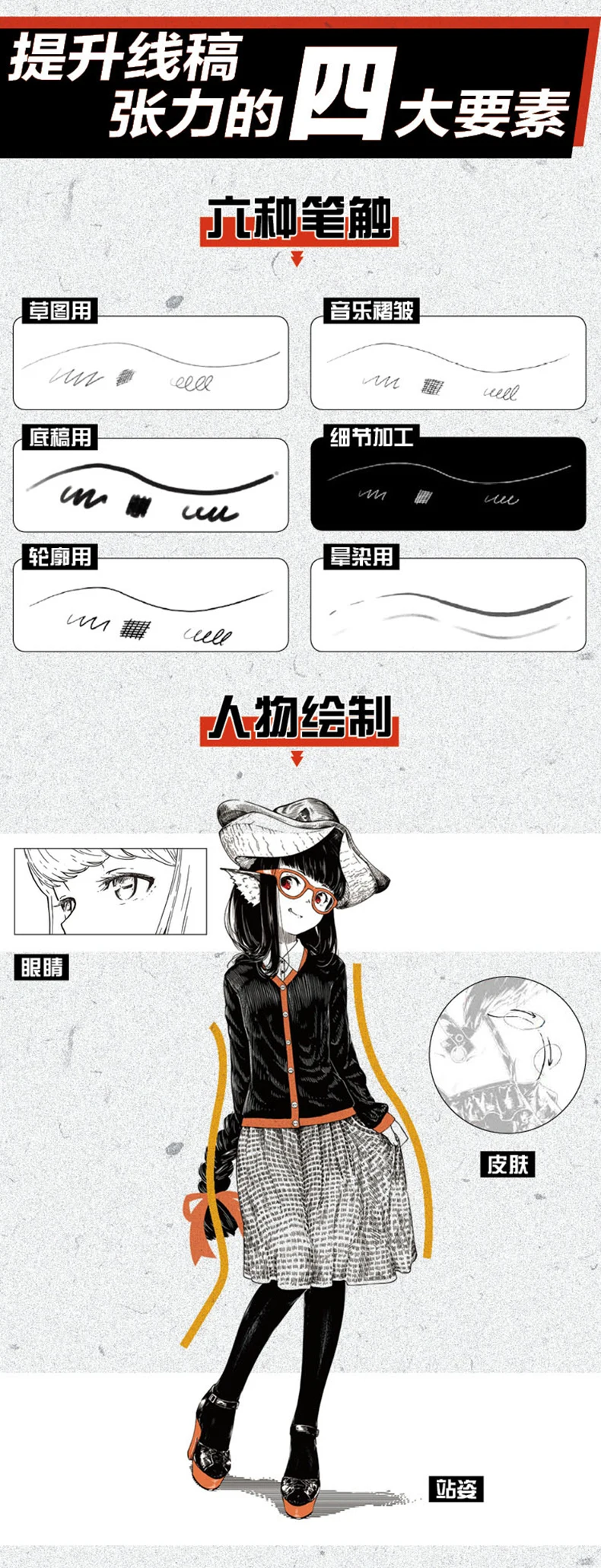 Черно-белая иллюстрация рисунок персонажа техника учебник на основе красивая девушка ручная роспись эскиз копирования картина книга