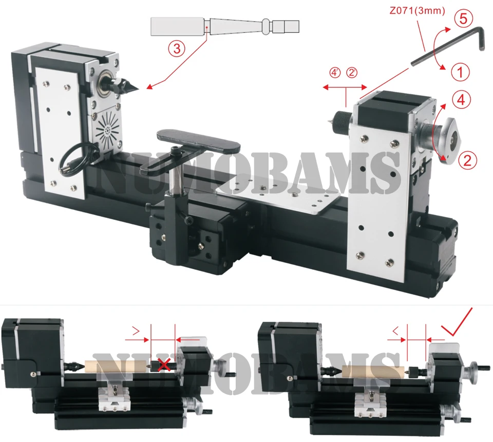 4. Заготовки могут быть зажаты трехкулачковым патроном или патроном (1-6 мм), центральным height-75mm, расстояние между центром-300 мм.