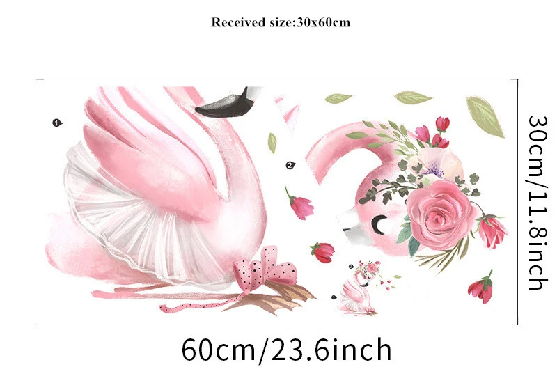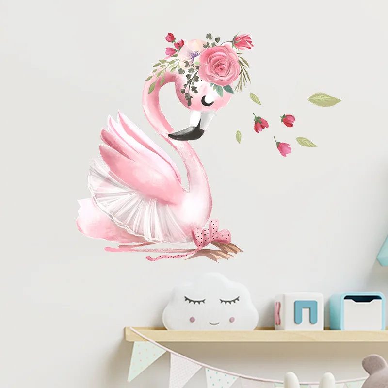 Красивые Розовые настенные наклейки с лебедем для детской комнаты, для девочек, для спальни, гостиной, для украшения дома, обои, съемные художественные наклейки на стену