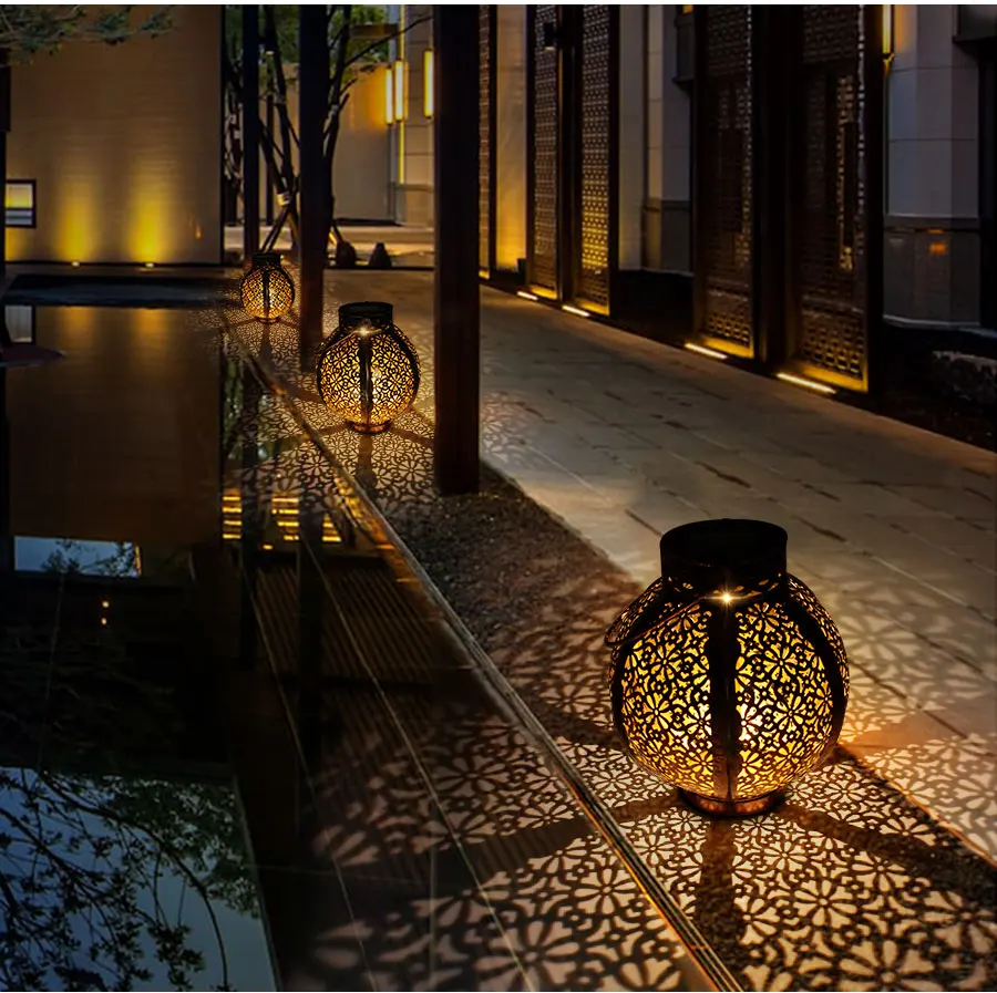 Подвесные солнечные фонари Ретро полые солнечные фонари с ручкой наружные солнечные садовые светильники Декор для двора дерево забор патио бронза