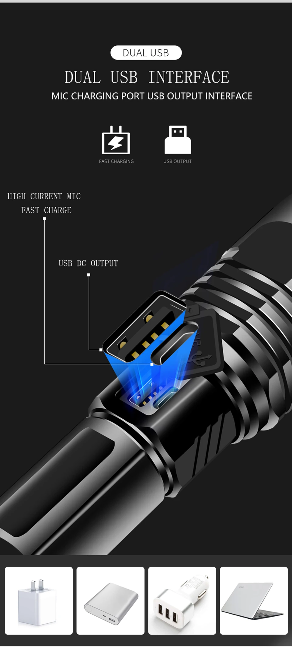 Бренд: Litwod Модель: X911-P200Светильник источник: XHP200Цвет внешнего вида: черный5-скоростной режим: 50%-75%-100%; Вспомогательный переключатель: Нажмите высокое светильник-нажмите дважды стробоскопРазмер: 178 мм × 48 мм × 35 ммМощность: 1x26650 аккумулятор или 1x18650 аккумулятор Время освещения: аккумулятор 18650 3-2 часа; Аккумулятор 26650: 6-12 часов Метод зарядки: Micro USB Прямая зарядка Диапазон: от 200 до 500 метров Зум: зум-объектив (увеличение/уменьшение Зума)Водонепроницаемость: IPX4 Вес: 235 грамм (без аккумулятора) Материал: T6063-T6 авиационный алюминийВнешний аккумулятор: ПоддержкаИспользование: семья, охота, патрулирование, строительство, пробуждение, техническое обслуживание, поиск и спасение