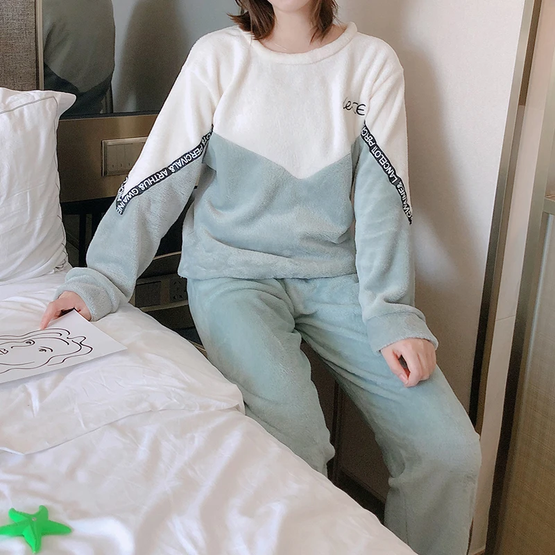 Новинка 2021, осенне-зимние теплые фланелевые женские пижамные комплекты, толстая Коралловая бархатная пижама с длинными рукавами и рисунком, фланелевые пижамы для девочек