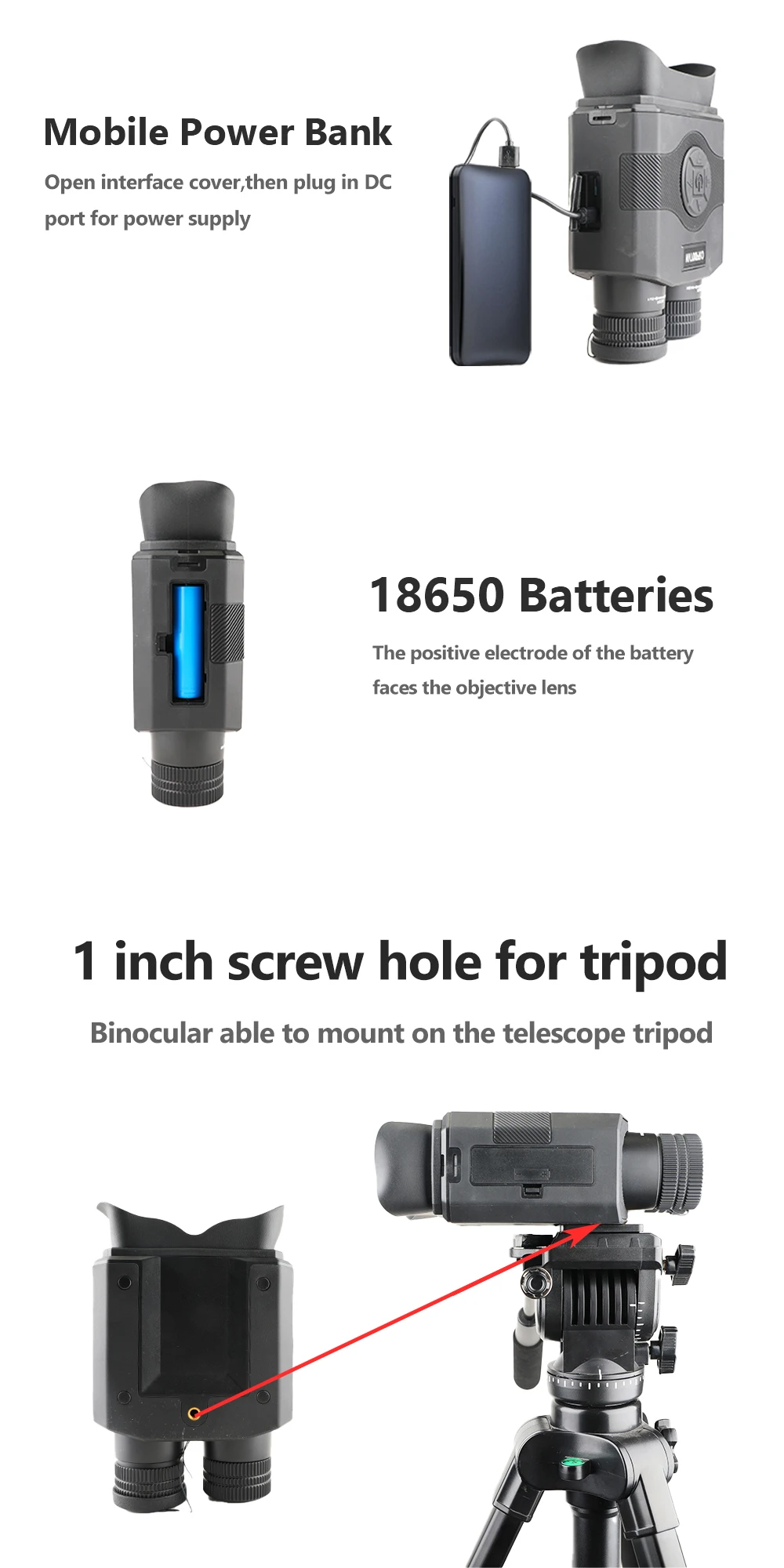 Вопрос 1: Можно ли использовать внешний USB внешний аккумулятор с этим бинокулярным? Спасибо.